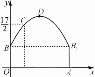 (1)抛物线的表达式为$y = - \frac { 1 } { 6 } x ^ { 2 } + 2 x + 4$,拱顶$D$到地面$OA$的距离为$10 \text { m }$;