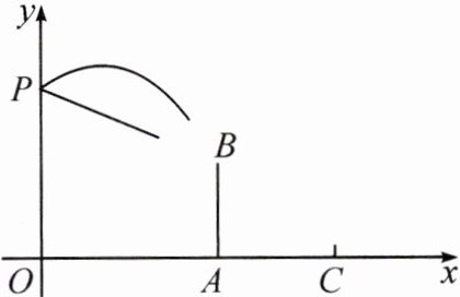 如图,在平面直角坐标系中,点$A$,$C$在$x$轴上,球网$AB$与$y$轴的水平距离$OA = 3\mathrm{m}$,$CA = 2\mathrm{m}$,击球点$P$在$y$轴上。若选择扣球,羽毛球的飞行高度$y(\mathrm{m})$与水平距离$x(\mathrm{m})$近似满足一次函数关系$y = - 0.4x + 2.8$;若选择吊球,羽毛球的飞行高度$y(\mathrm{m})$与水平距离$x(\mathrm{m})$近似满足二次函数关系$y = a(x - 1)^{2}+3.2$。
