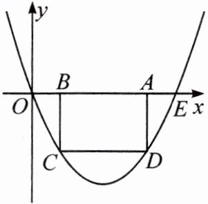 3. (东营中考节选)如图,抛物线过点 $ O(0,0) $,$ E(10,0) $,矩形 $ ABCD $ 的边 $ AB $ 在线段 $ OE $ 上(点 $ B $ 在点 $ A $ 的左侧),点 $ C $,$ D $ 在抛物线上. 设 $ B(t,0) $,当 $ t = 2 $ 时,$ BC = 4 $. 当 $ t $ 为何值时,矩形 $ ABCD $ 的周长有最大值?最大值是多少?