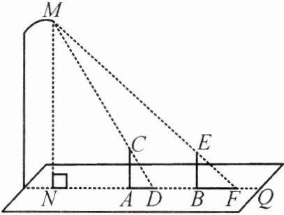 $\therefore \triangle CAD \sim \triangle MND$. $\therefore \frac{CA}{MN} = \frac{AD}{ND}$. $\therefore \frac{1.6}{MN} = \frac{1 × 0.8}{(5 + 1) × 0.8}$.