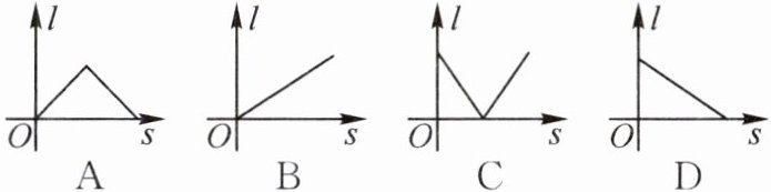 14. (新疆中考)如图,小红居住的小区内有一条笔直的小路,小路的正中间有一路灯,晚上小红由 $A$ 处径直走到 $B$ 处,她在灯光照射下的影长 $l$ 与行走的路程 $s$ 之间的变化关系用图象刻画出来,大致图象是( )