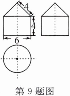 9. (济宁中考)一个几何体的三视图如图所示,则这个几何体的表面积是(