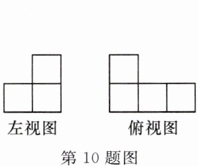 10. (淄博临淄区期中)用小立方块搭成的几何体的左视图和主视图如图所示,这样的几何体最多要 $x$ 个小立方块,最少要 $y$ 个小立方块,则 $x + y =$(