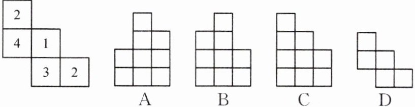 6. (泰安泰山区模拟)一个几何体由大小相同的小立方块搭成,它的俯视图如图所示,其中小正方形中的数字表示在该位置小立方块的个数,则该几何体的左视图为(