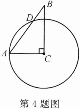 4. 如图,在△ABC中,∠ACB=90°,以点C为圆心,CA为半径的圆交AB于点D,且$\overset{\frown}{AD}$=70°,则∠B=