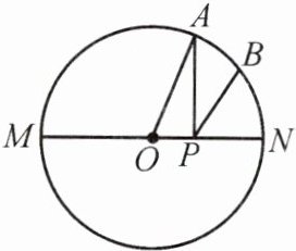 8.解:作点B关于MN的对称点B',因为圆是轴对称图形,每一条直径所在的直线都是对称轴,所以点B'在圆上。连接AB',与MN的交点为P点,此时PA+PB最短。因为AN的度数为60°,点B为AN的中点,所以$∠B'ON=∠BON=\frac{1}{2}∠AON=30°。$所以∠AOB'=90°。在Rt△AOB'中,$AB'=\sqrt{OA^{2}+OB'^{2}}=\sqrt{2},$所以PA+PB的最小值为$AB'=\sqrt{2}。$