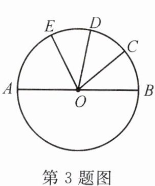 3. 如图,AB是⊙O的直径,$\overset{\frown}{BC}=\overset{\frown}{CD}=\overset{\frown}{DE}$,∠BOC=40°,则$\overset{\frown}{AE}$的度数为