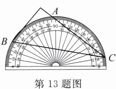 13. (枣庄中考)将量角器按如图所示的方式放置在三角形纸板上,使点$C$在半圆上. 点$A$,$B$的读数分别为$86^{\circ}$,$30^{\circ}$,则$\angle ACB$的度数是 (