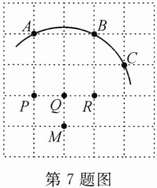 7. 如图,在$5×5$正方形网格中,一条圆弧经过$A$,$B$,$C$三点,那么这条圆弧所在圆的圆心是(