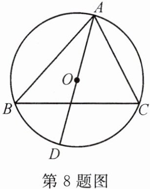 9. 如图,在$\triangle ABC$中,$AB = AC$,$AD$是$BC$边上的高。请用尺规作图法,求作$\triangle ABC$的外接圆。(保留作图痕迹,不写作法)