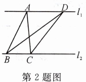 2. (教材P126“想一想”变式)如图,直线$l_1// l_2$,$\triangle ABC$的面积为$10$,则$\triangle DBC$的面积(