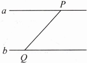 1. 如图,直线$a// b$,且$a$,$b$之间相距$4\mathrm{cm}$,点$P$是直线$a$上一定点,点$Q$在直线$b$上运动,则在点$Q$的运动过程中,线段$PQ$的最小值是