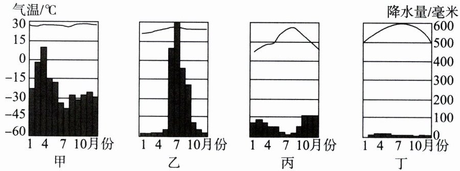 。(4分)(3)在图甲中,年平均气温最低的大洲是