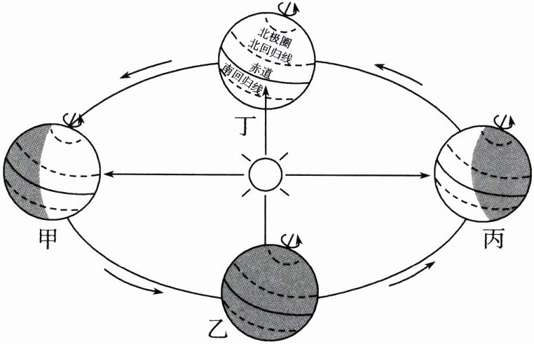 (甲/乙/丙/丁)位置附近,这段时间里,山东省昼夜长短的变化情况是昼变长,夜变短