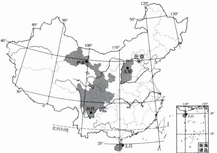 发射场成功发射。右图为我国四大卫星发射基地位置图。读图,完成3~5题。