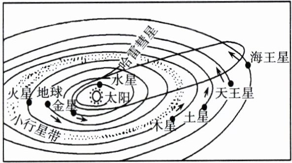 浩瀚宇宙中有许多美丽的星球,而地球是人类唯一的家园。读太阳系八大行星示意图,完成1~2题。