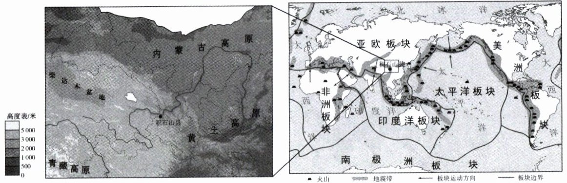 2023年12月18日23时,甘肃省临夏回族自治州积石山县发生6.2级地震,震后青海省民和县中川乡发生次生灾害泥石流,损失严重。读全球板块分布及中国局部地形图,完成6~7题。