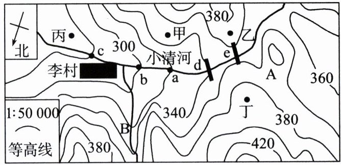 (5)当地政府响应国家政策对小清河流域进行综合治理,欲修建一个小型水库,水库坝址的选择往往是借助两边山脊,使得工程量最小,蓄水量最大。你认为应选在