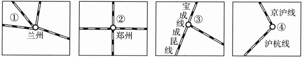 3. 读下列我国四个重要的铁路枢纽示意图,以下说法正确的是(