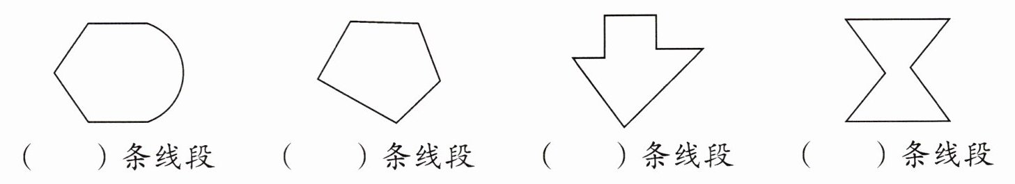 2. 下面的图形各有几条线段?填一填。