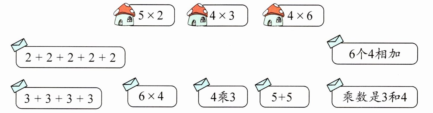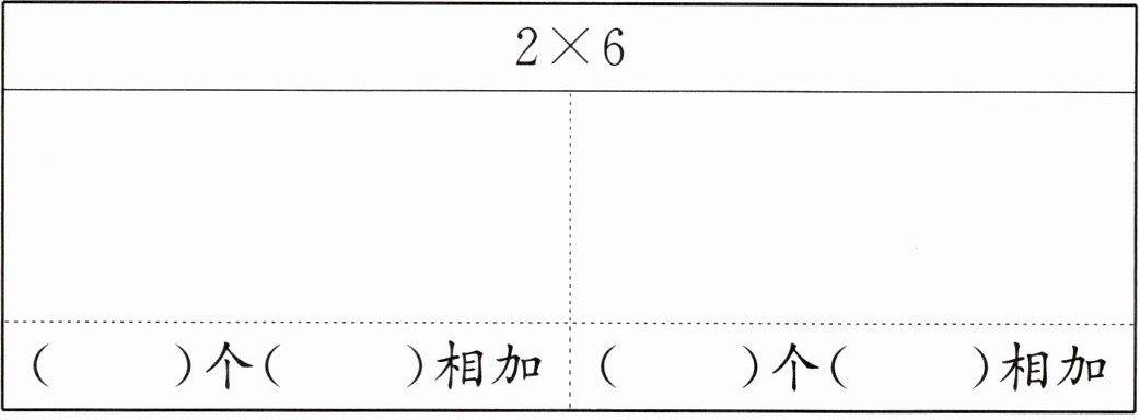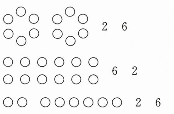 4. $2×6$和$2+6$表示的含义有什么不同?用○画出表示这两个算式的图。