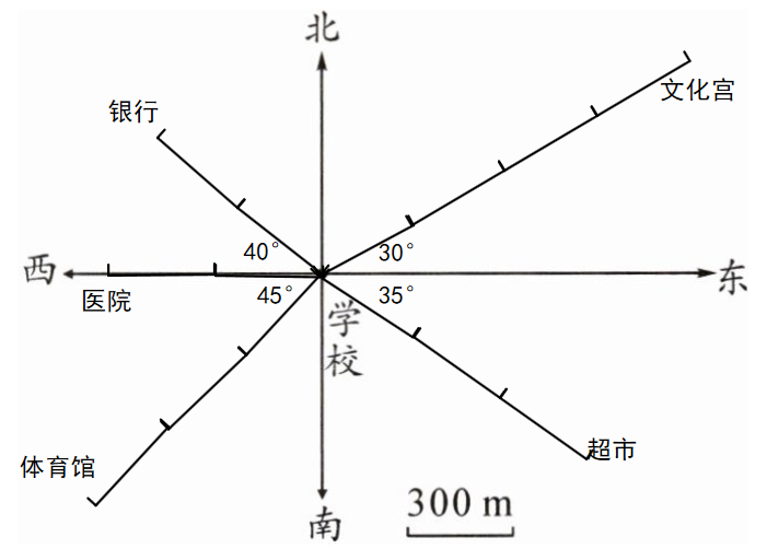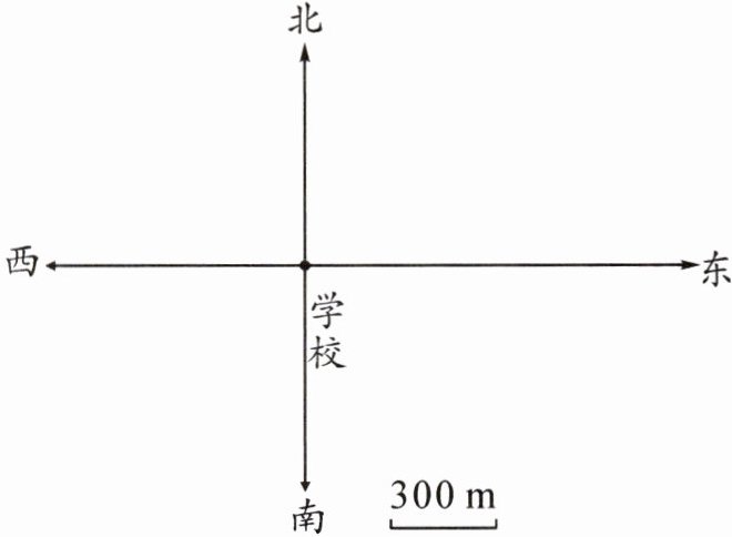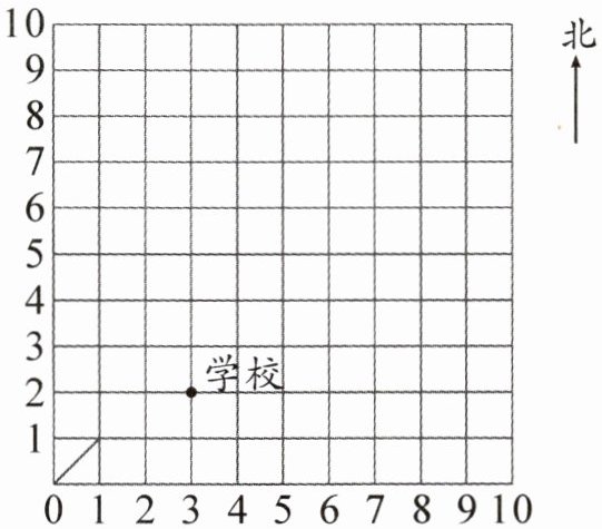 3. 文文家位于学校的北偏西45°方向600m处,请在图中标出文文家的位置,并用数对表示出来。