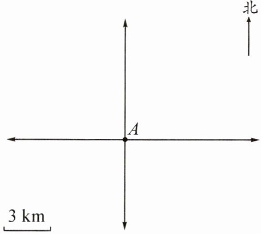 三、非洲草原上,A点处有两只羚羊在悠闲地吃草,突然它们发现了一头狮子,羚羊甲以每分钟1.2km的速度向西偏北40°方向奔跑,羚羊乙以每分钟0.9km的速度向东偏南30°方向奔跑。请在图中标出10分钟后两只羚羊的位置。