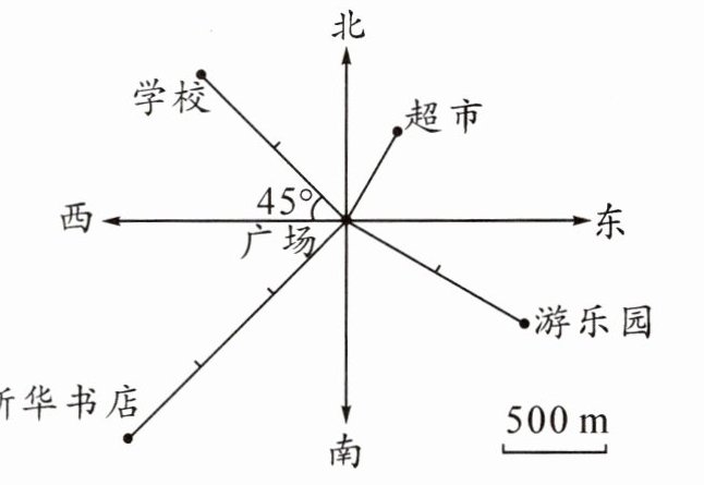 2. 游乐园在广场的南偏(