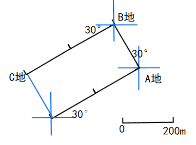 答:小新家和A地、B地、C地四点组成一个长方形,这时小新离家200m。