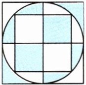 六、利用圆的对称性算一算,图中涂色部分的面积:空白部分的面积=(