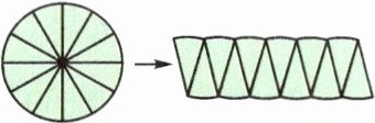 1. 如图,把圆分成若干(偶数)等份后可以拼成一个近似的长方形,这个长方形的长近似于圆周长的(