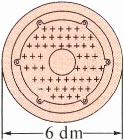 三、智能喷涂机器人可以节省涂料、提高效率。若平均每平方分米用 $ 15 \, g $ 涂料,则喷涂一个圆形井盖(如图)需要多少克涂料?
