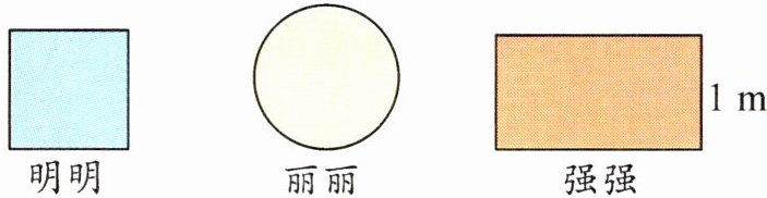 五、明明、丽丽和强强都用长 $6.28 m$ 的绳子在操场上围出一块地(如图),绳子都刚好用完,谁围的地最大?为什么?
