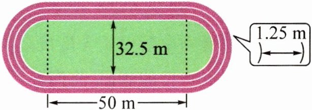 二、有一个环形跑道(如图),它是由两个直道和两个半圆形跑道组成,内圈弯道直径为 32.5 m,直道长 50 m,每条跑道宽 1.25 m。