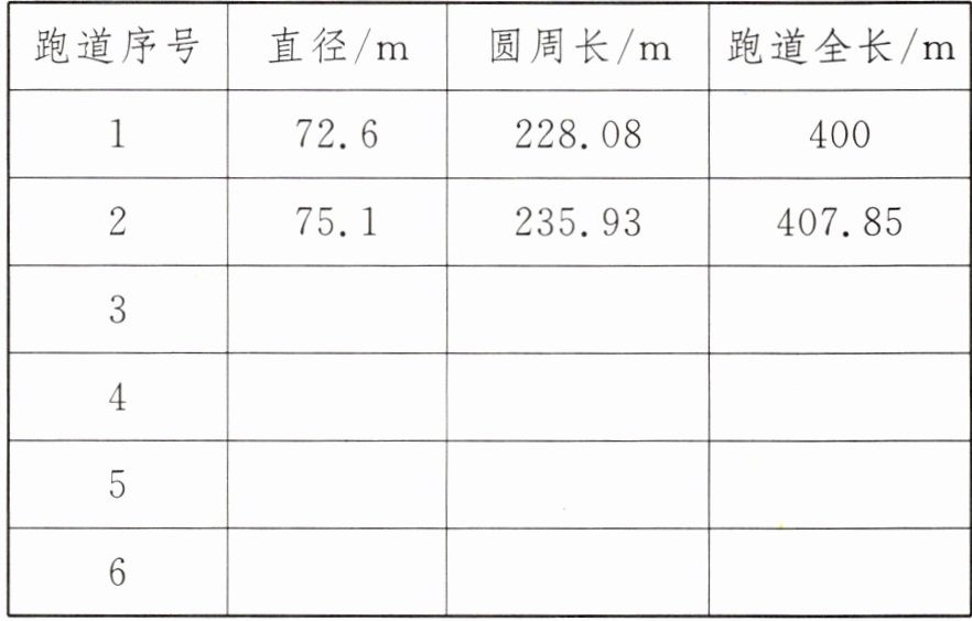 )m,由内向外数,第一条半圆形跑道的直径是(72.6