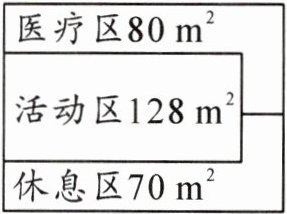 四、社区修建一个活动室,原设计方案如图所示。由于需要,现将活动区面积的$\frac{5}{32}$改为休息区。现在休息区的面积是多少平方米?