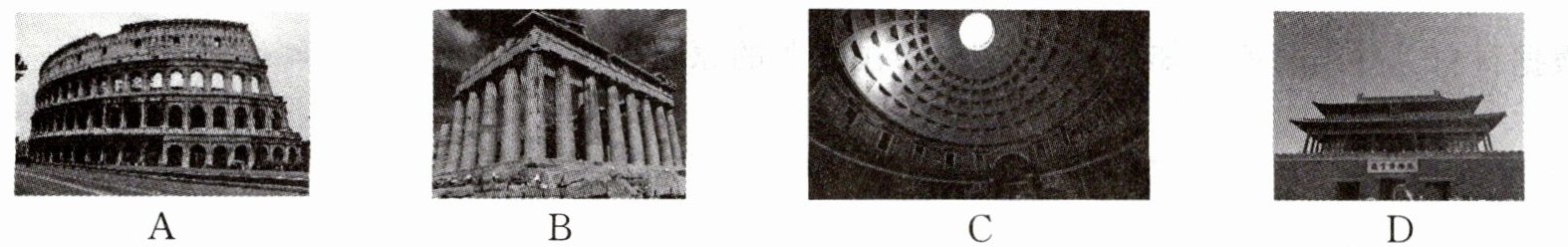 3. 希腊建筑是欧洲艺术的研究起点。下列选项中最能代表希腊建筑特色的是(