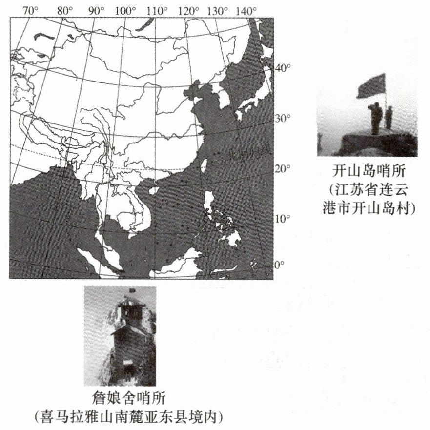 我国疆域辽阔,边防哨所是国家安全的重要保障。迎着2025年的第一缕阳光,我国两地边防哨所的官兵升起了五星红旗。下图为我国疆域示意图,据此完成2~4题。