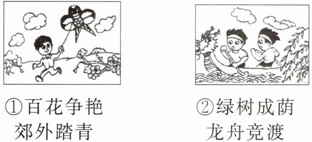 14. (跨学科·美术)(北京中考)传统节日是中华优秀传统文化的重要载体。下图为我国某地四大传统节日景观及习俗简笔画。图中景观及习俗与传统节日对应正确的是(