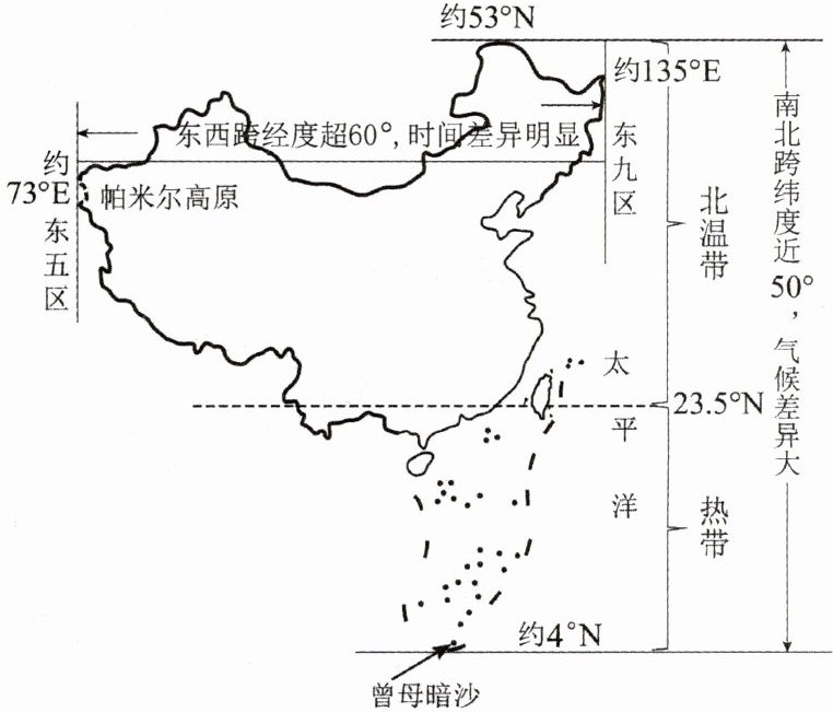 )A. 南北跨纬度广,气候差异明显