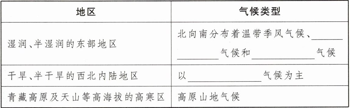 3. 按照温度带和干湿地区的空间组合,可以将我国的气候概括为不同的气候类型。