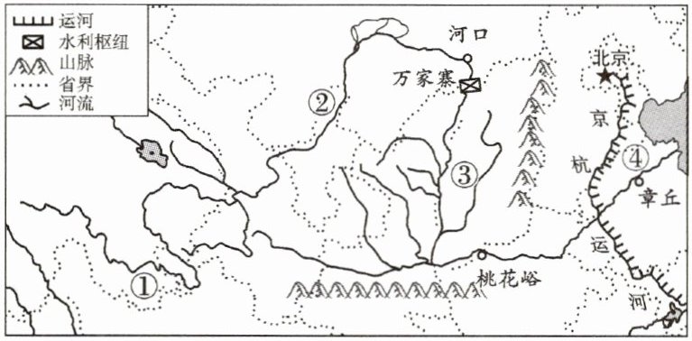 2023年3月16日,黄河内蒙古封冻段全线开通,凌汛洪水安全进入万家寨水库,标志着黄河2022—2023年度凌汛期结束。下图为黄河水系简图。据此完成4~5题。