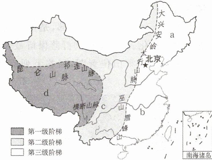 (陕西中考)读中国地势三级阶梯分布示意图,完成4~5题。