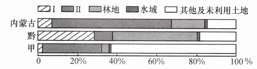 (呼和浩特中考)下图为我国的三个省级行政区土地利用结构图。读图,完成10~11题。