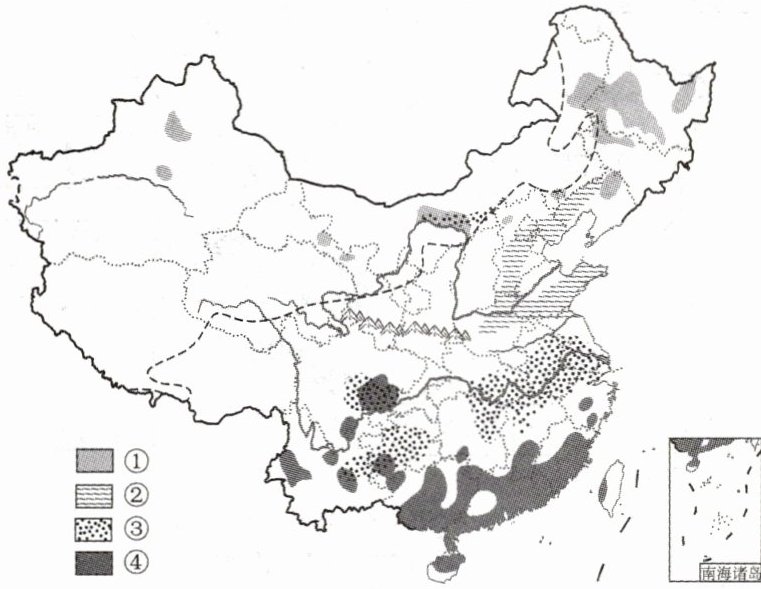 (区域认知,人地协调观)读我国主要种植业区及主要农作物分布图,完成5~6题。