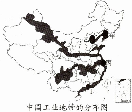 改革开放之后,我国工业发展迅速,一些老工业中心成长壮大,新工业中心不断涌现。读中国工业地带的分布图,完成1~3题。