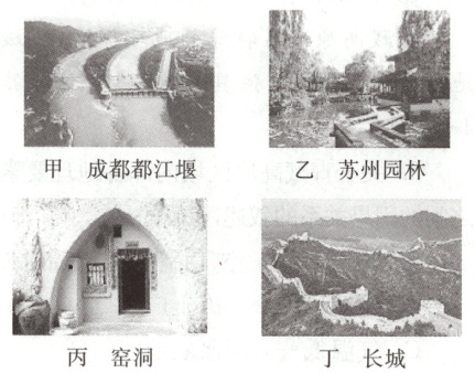 下图中甲、乙、丙、丁所示景观均为我国文化遗产。据此回答 8~9 题。