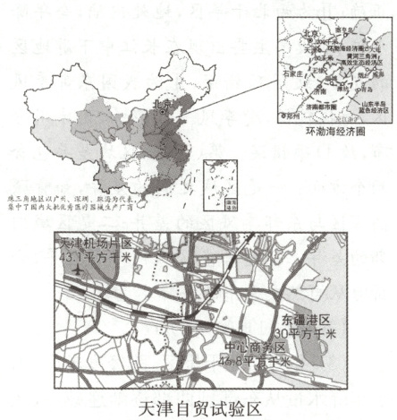 (2)请分别从全国区域与环渤海经济圈角度简述天津自贸试验区的区域特征。