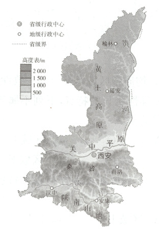 某纪录片带观众领略秦岭南北的迥异风光。纪录片中有关于陕西省的两段解说词,解说词一:“一山一水决定了陕西的格局,把陕西一分为三……早春时节,自北向南,黄土高原大雪飘飞,关中平原小麦滴翠,陕南山地鲜花怒放。”解说词二:“迥异于南方梯田的润泽,黄土高原上为旱地梯田。陕北的春天来得晚,春播之后的梯田,常常要铺上塑料薄膜。”下图为陕西省的图像材料。据此回答 4~5 题。