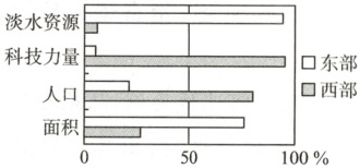 材料二 下图为俄罗斯东、西部地区部分指标比较示意图。